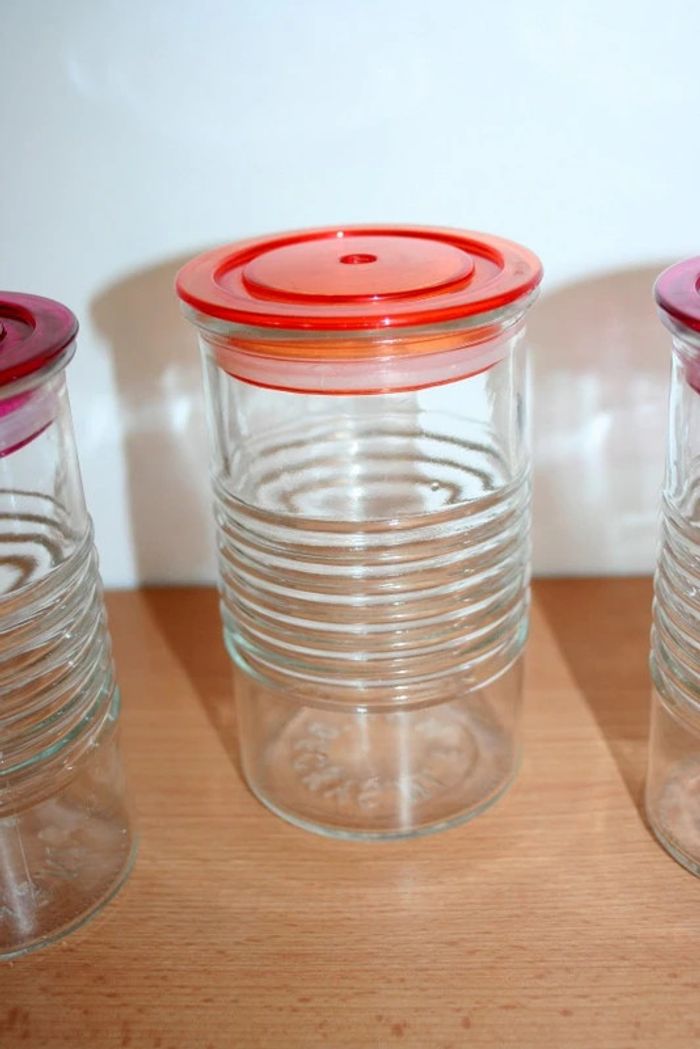 Lot de 3 verres avec couvercle hermétique et trou pour mettre une paille, 13cm de haut et 8cm de diamètre, verre épais, 950g