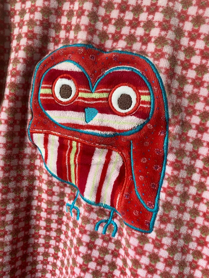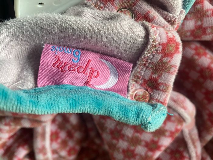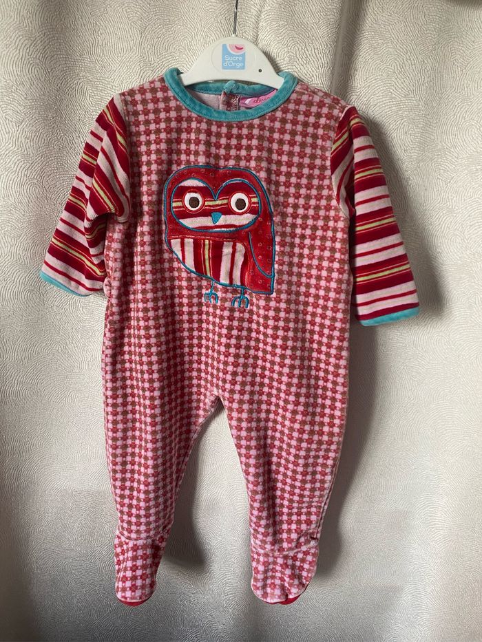 Pyjama velours chouette Rouge rose et turquoise Taille 6 mois 67 cm 80% coton 20% polyester Du pareil au même