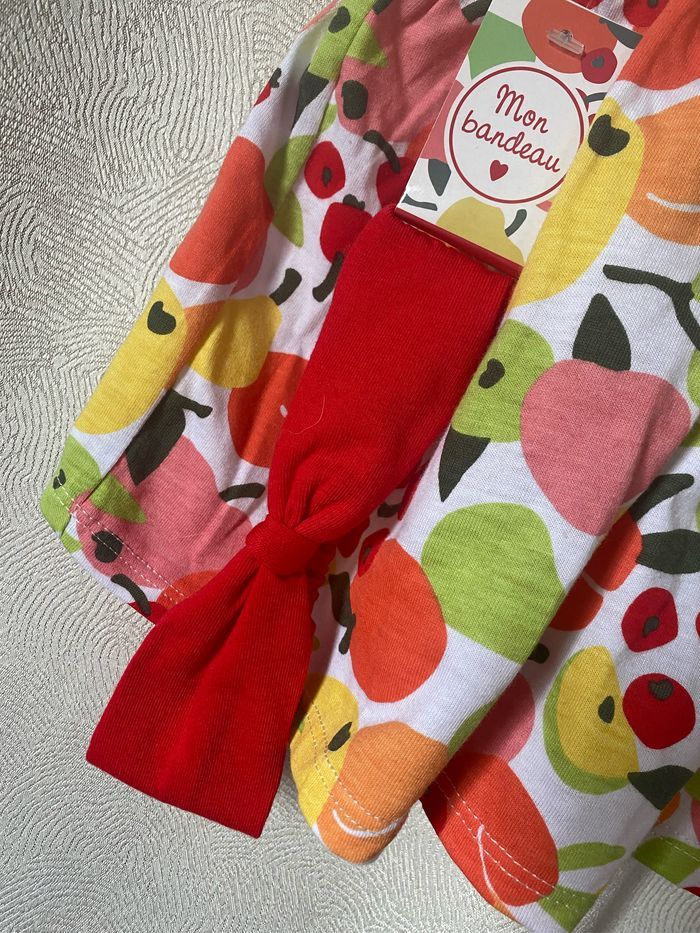 Ensemble neuf robe imprimé fruits et bandeau rouge 6 mois
