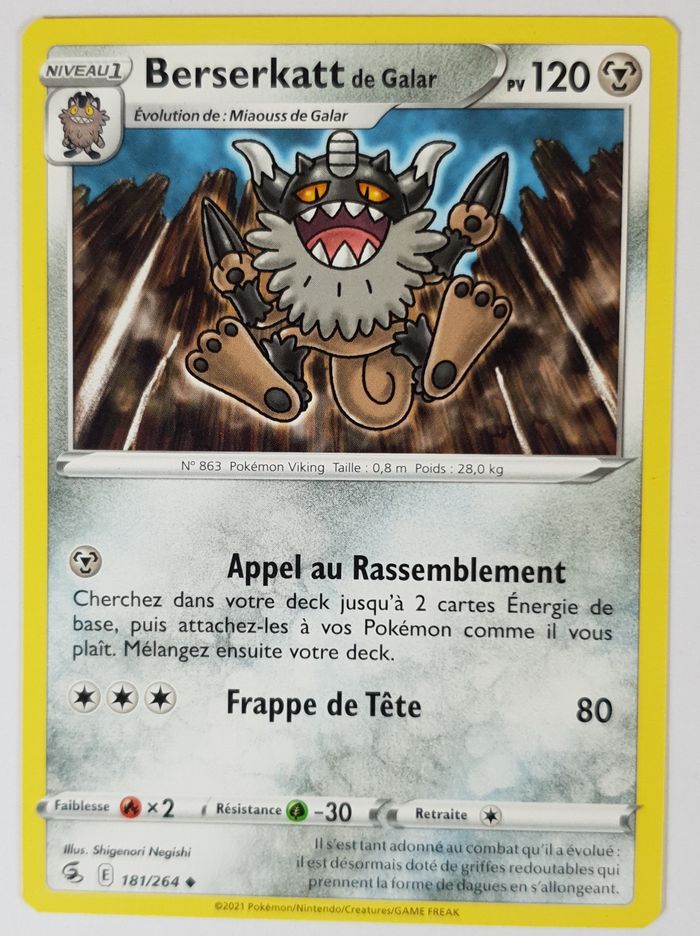 Carte Pokemon Berserkatt de Galar 181/264 ◆ Poing de Fusion FR ©