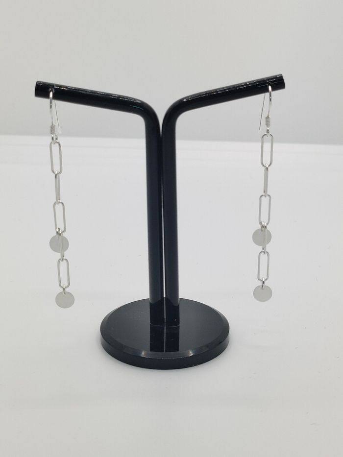 Boucles d'oreilles femme en argent 925 jamais porté Vendu avec un écrin Longueur 6cm Fermoir caoutchouc