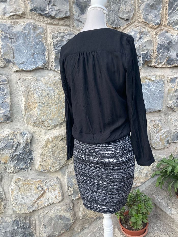 À vendre💰 💕 Très jolie robe avec ja jupe moulante et le haut ample avec des manches longues (style blouse) Impression d’un ensemble composé de 2 pièces, mais en réalité c’est une robe 👗 ✨ Très bon état 📏 Taille 36 je pense… manque étiquette 🎨 Couleur : noire et blanche 🧥 Marque : CAMAÏEU 📦 Envoi rapide et soigné
