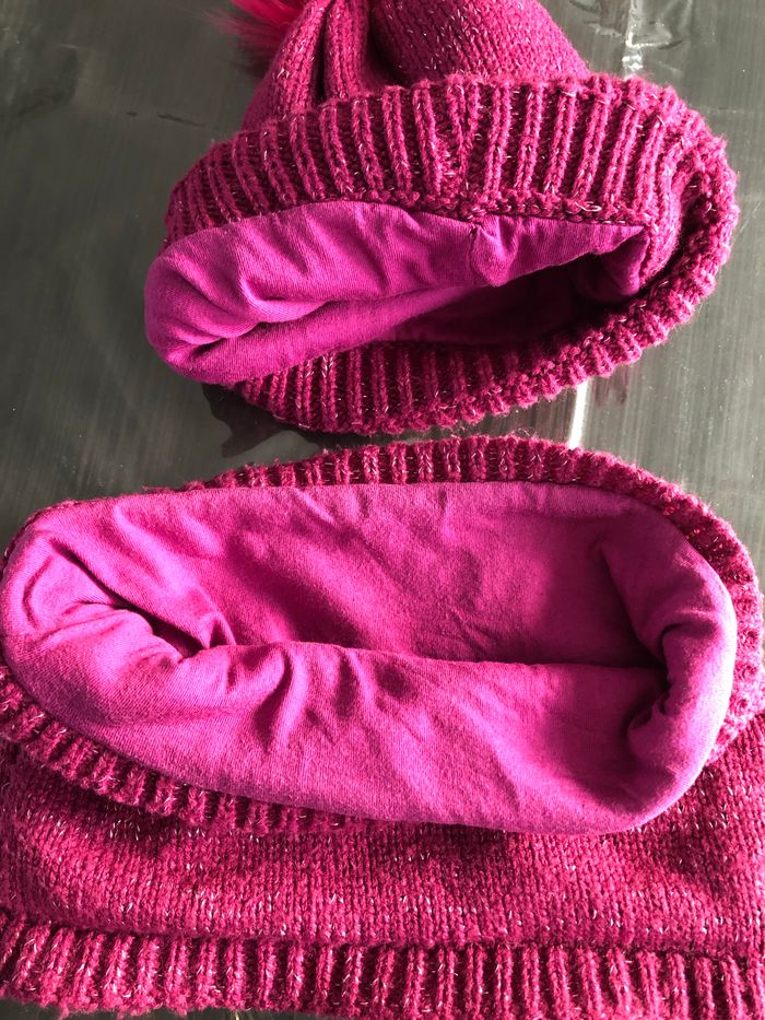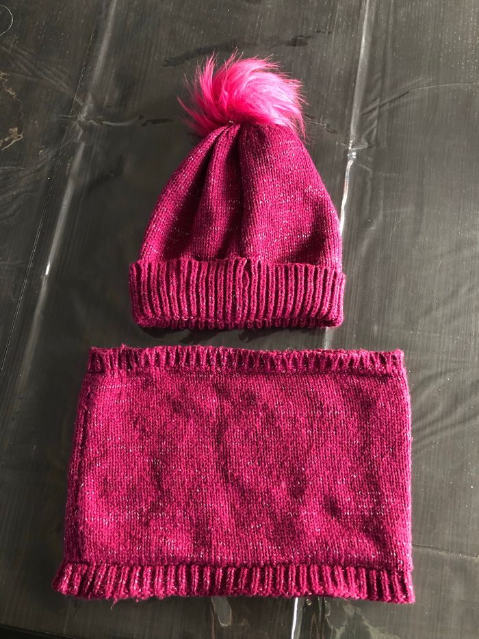 Vends lot bonnet et tour de coup fushias La reine des neige Bonnet petit par rapport au snood