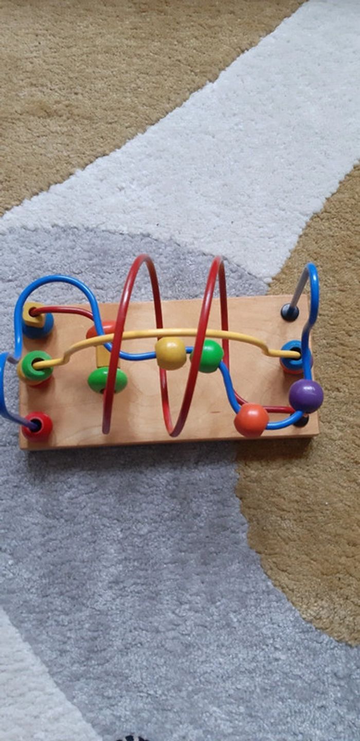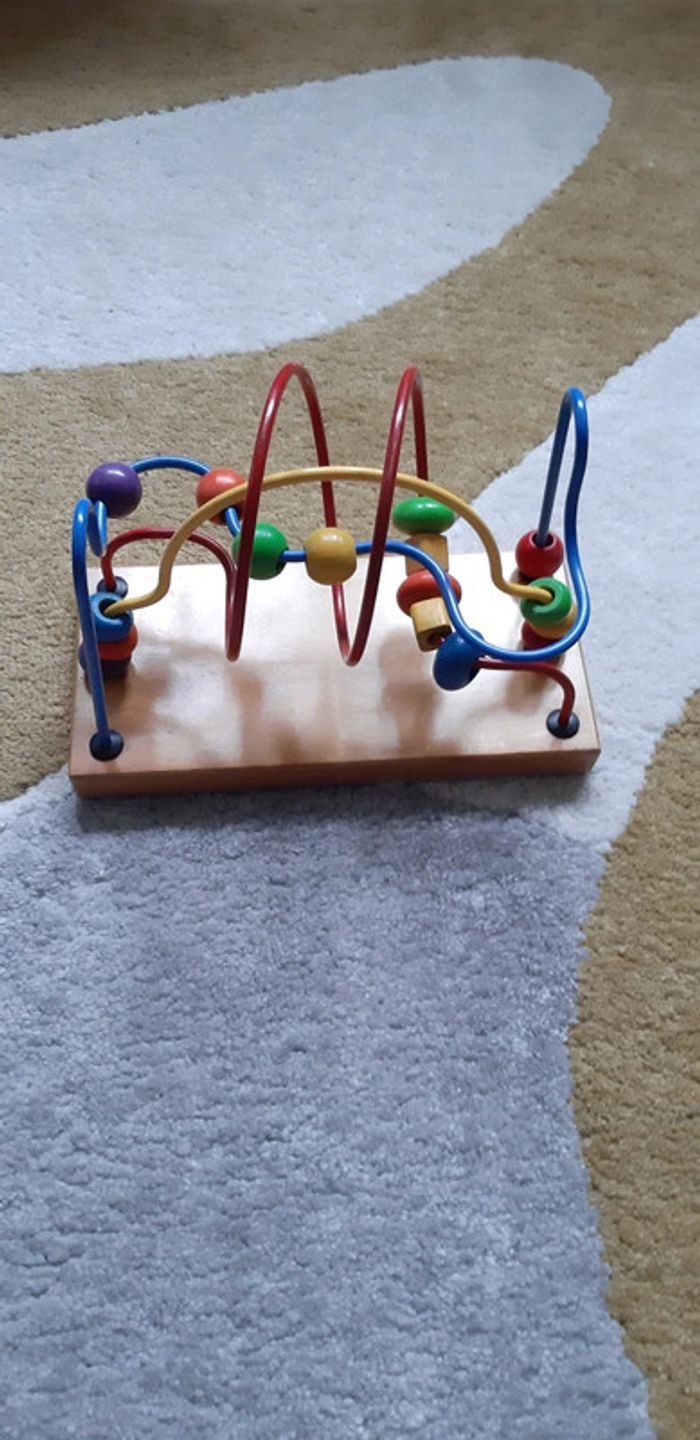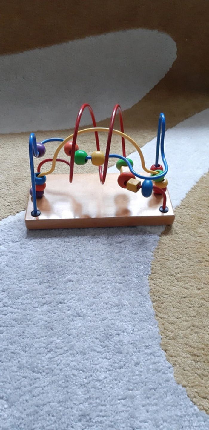 Jouet bébé enfant jeu fil rigide perle à glisser socle bois - photo numéro 1