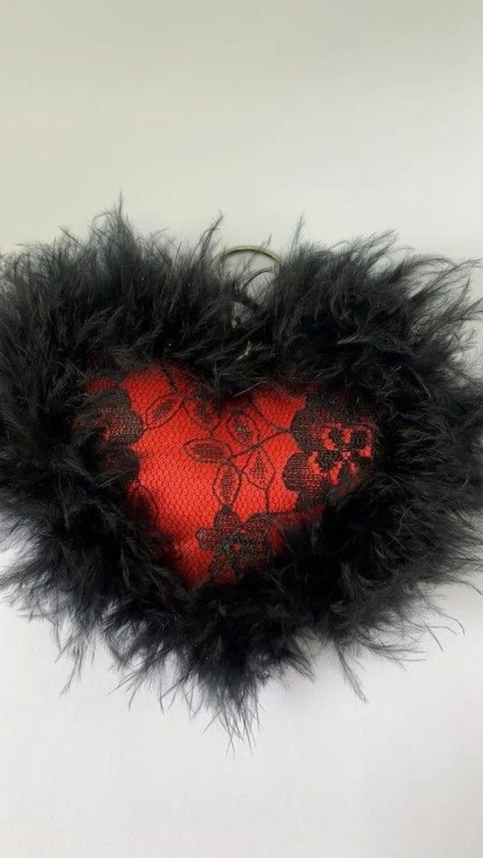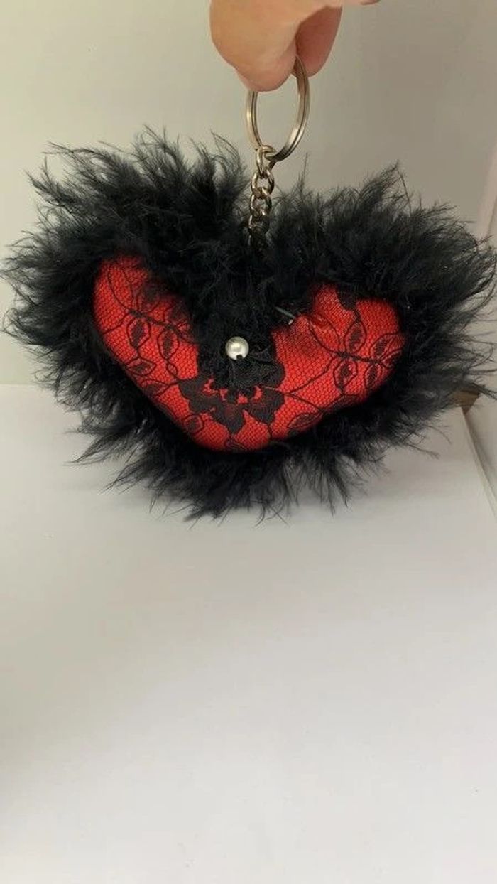 Porte clé Cœur Baroque 10 cm Coeur rouge et contour plumes