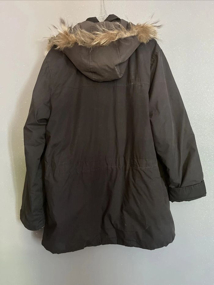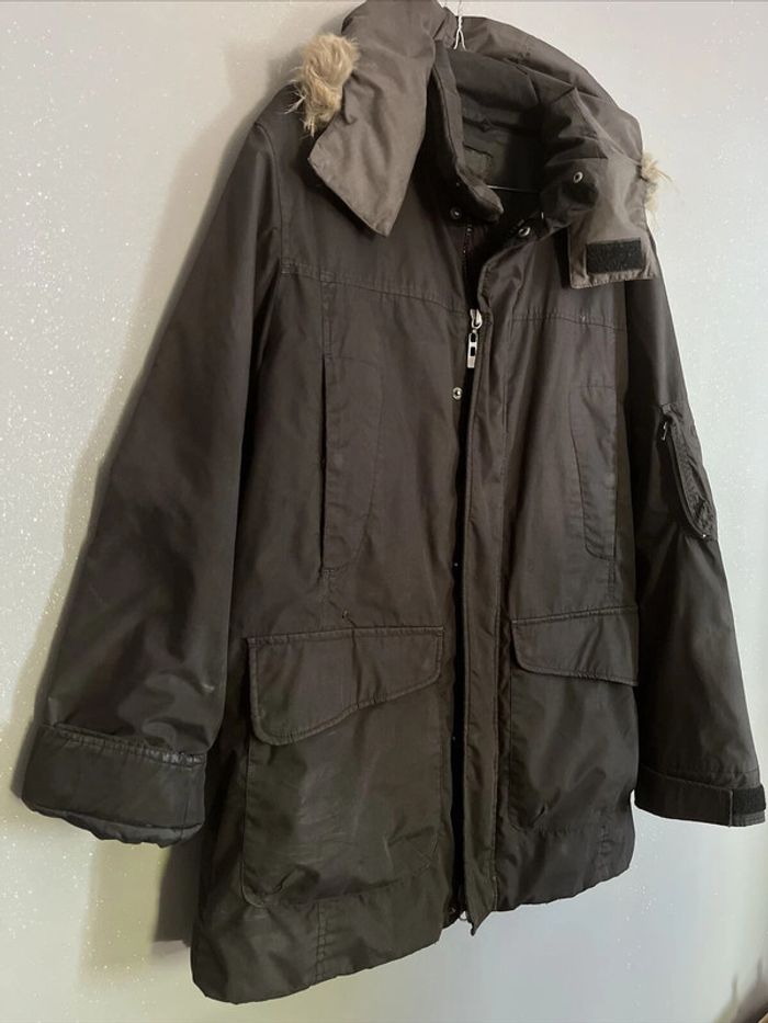 Veste Manteau à Capuche amovible / Capuche fausse fourrure Sergio Tacchini Taille M Longueur 83 cm Multi poches extérieur/intérieur (dont poche sur bras) Cordon de serrage intérieur, manches réglables par scratch Fermeture zip + boutons Un petit trou devant mais pas gênant (voir photo)