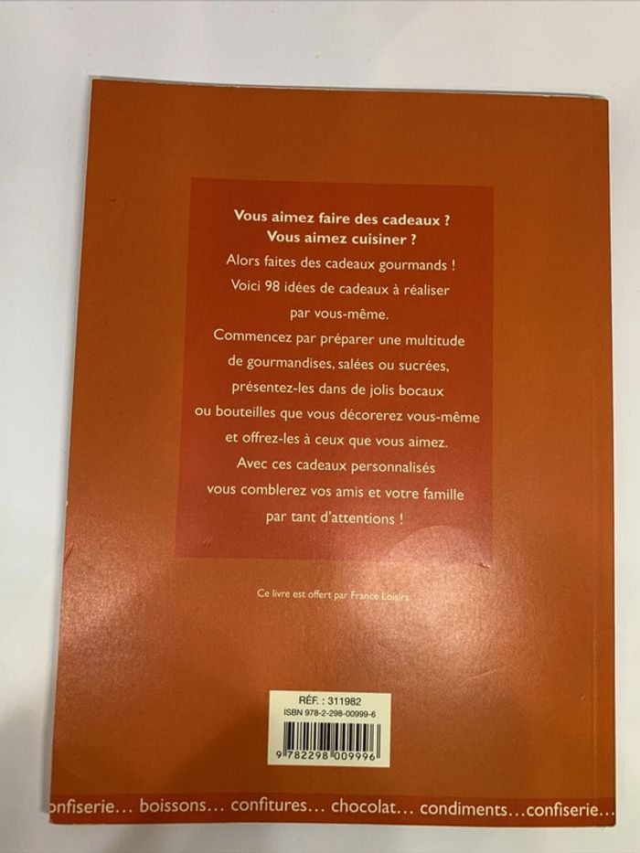 Livre cadeaux gourmands - France Loisirs Auteur(s) : ghylenn descamps Vous aimez faire des cadeaux? Vous aimez cuisiner? alors faites des cadeaux gourmands! Voici 98 idées de cadeaux à réaliser par vous-même. Commencez par préparer une multitude de gourmandises, salées ou sucrées, présentez-les dans de jolis bocaux ou bouteilles...