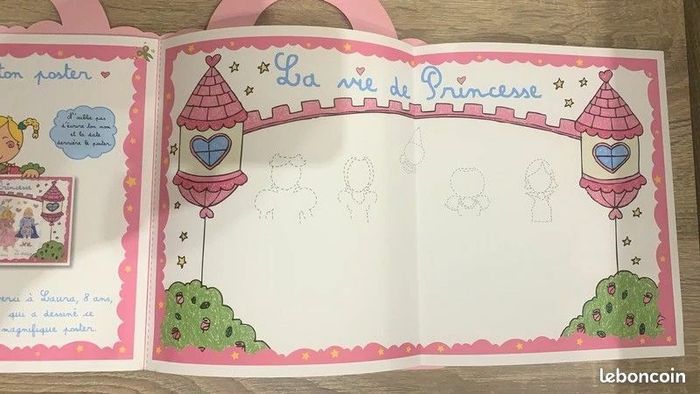 Livre je dessine la vie de princesse - Cahier de dessin 16 pages Éditions Fleurus Un poster détachable à dessiner Livre entamé mais dessine au crayon gris et peut être effacé