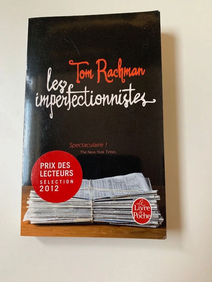 LIVRE LES IMPERFECTIONNISTES - TOM RACHMAN Prix des lecteurs, édition 2012 Ils sont pathétiques, incompétents … mais irrésistibles. Éternels abonnés à l'infortune, les onze «imperfectionnistes» de ce roman choral se croisent tous les jours, sans presque rien savoir les uns des autres, dans la salle de rédaction d'un anonyme quotidien international basé à Rome. Parmi eux, un très incapable directeur de la publication ; un correspondant à Paris au bout du rouleau; un préposé aux nécrologies frappé par une tragédie aux conséquences inattendues ; un pigiste débutant au Caire… Exubérant de vitalité et saisissant de vérité, ce premier roman, en narrant les mésaventures de ces «chiens écrasés» de l'existence, embrasse un demi-sièce de vie de la presse écrite. Une satire acide, à la Tom Wolfe, des vanités humaines. Baptiste Liger, L’Express.