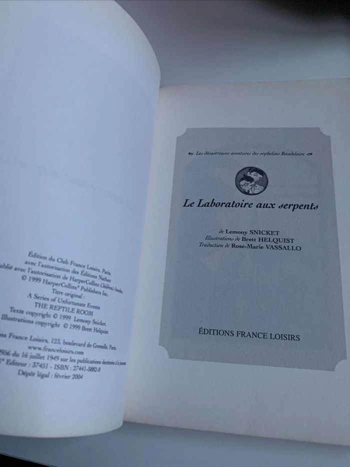 Livre Les Désastres Aventures des Orphelins - Tome 11 - Le Laboratoire aux Serpents Beaudelaire