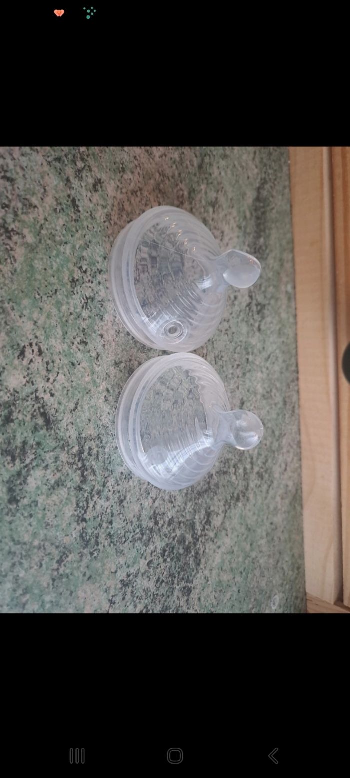 NUK for Nature Lot de 2 tétines de rechange pour biberon de 0 à 6 mois, en silicone durable avec aération anti-colique, sans BPA, transparent Erreur d'achat, neuves jamais utilisées, juste lavées une fois Prix d'achat neufs: 6,90€ sur amazon