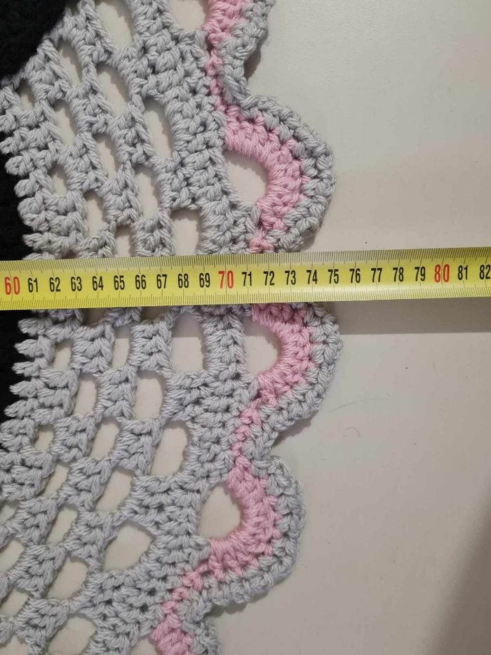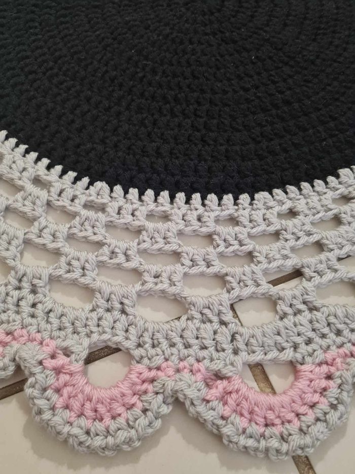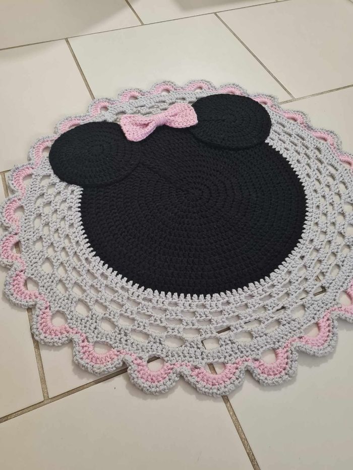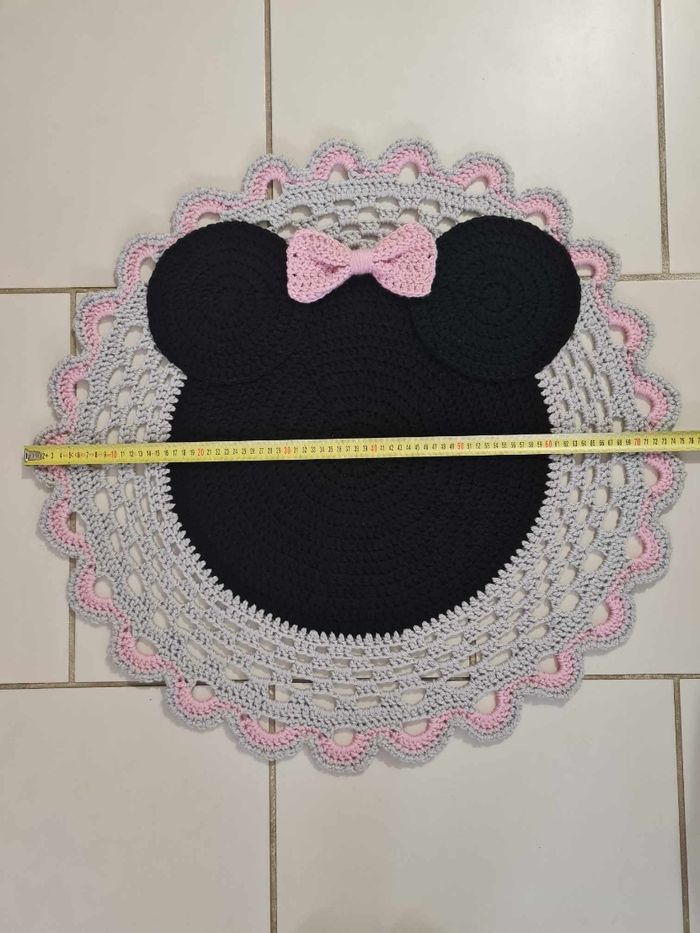 Bonjour je vends ce tapis Minnie Neuf fait main au crochet, mesure 75 cm de diamètre. De couleur gris, rose et noir