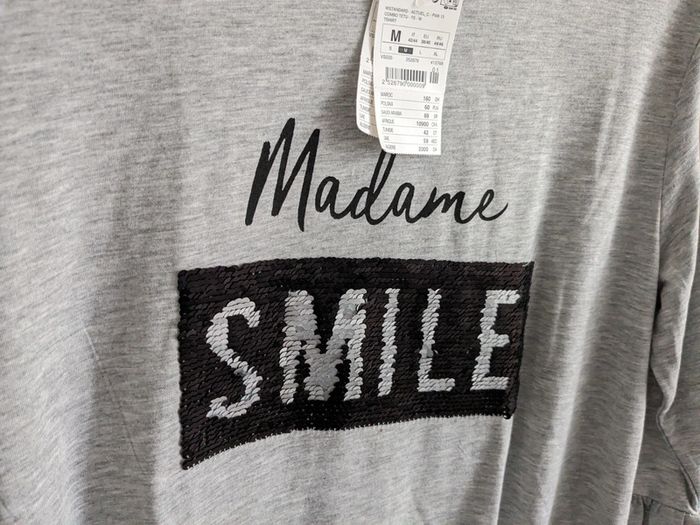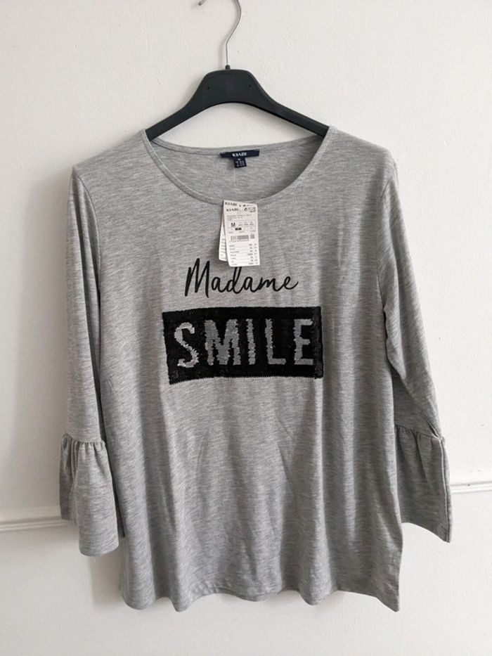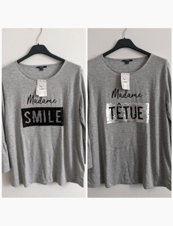 T-shirt manches longues têtue smile M A sequin Changement de texte Têtue ou smile