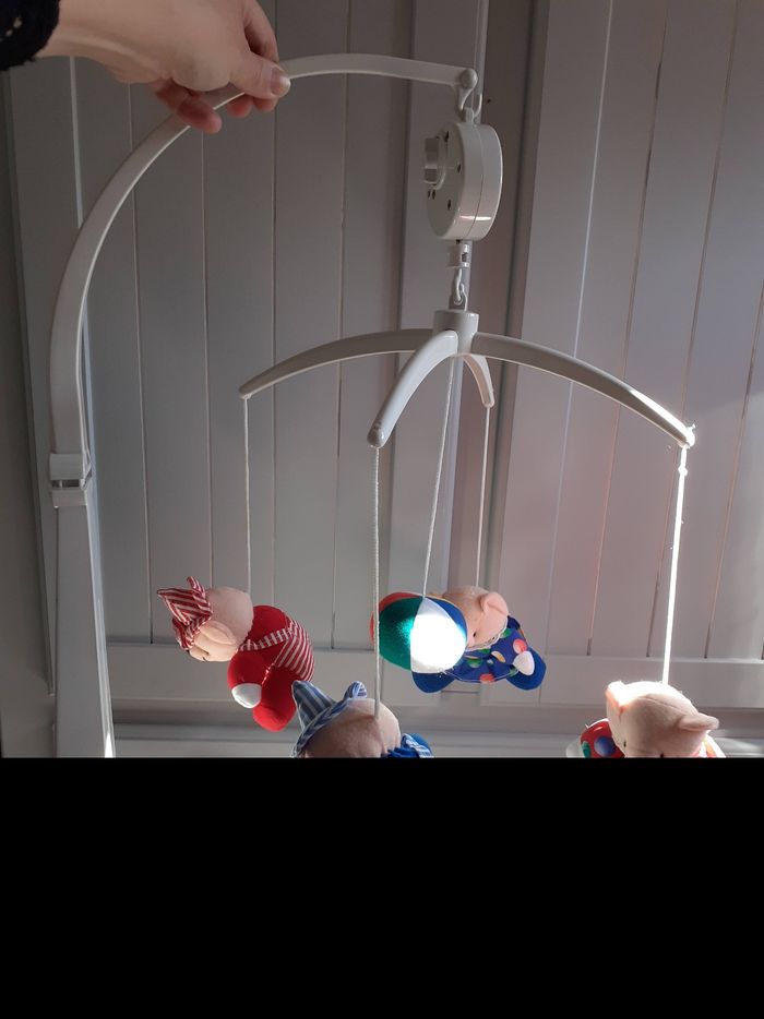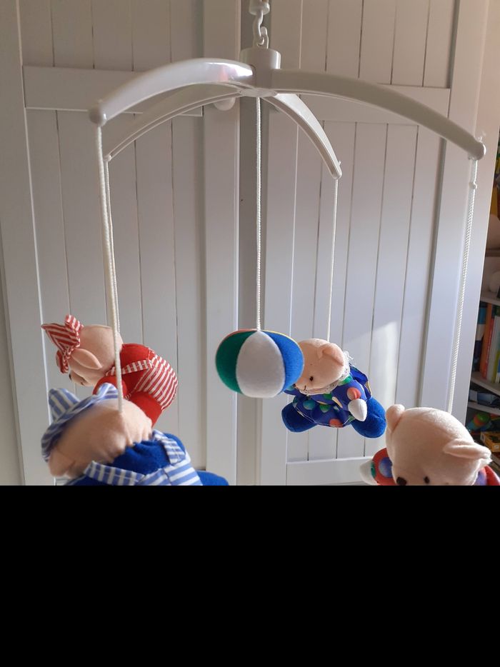 Mobile bébé musical. Les peluches passent à la machine. Bon état.