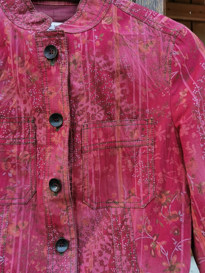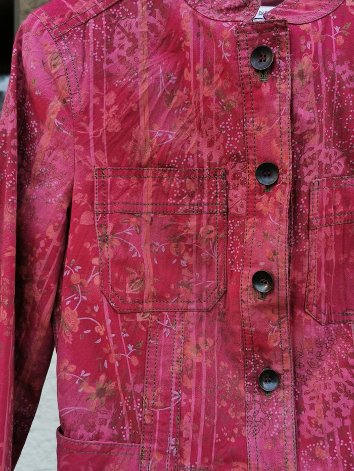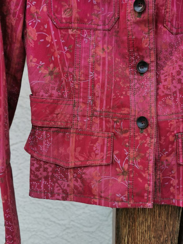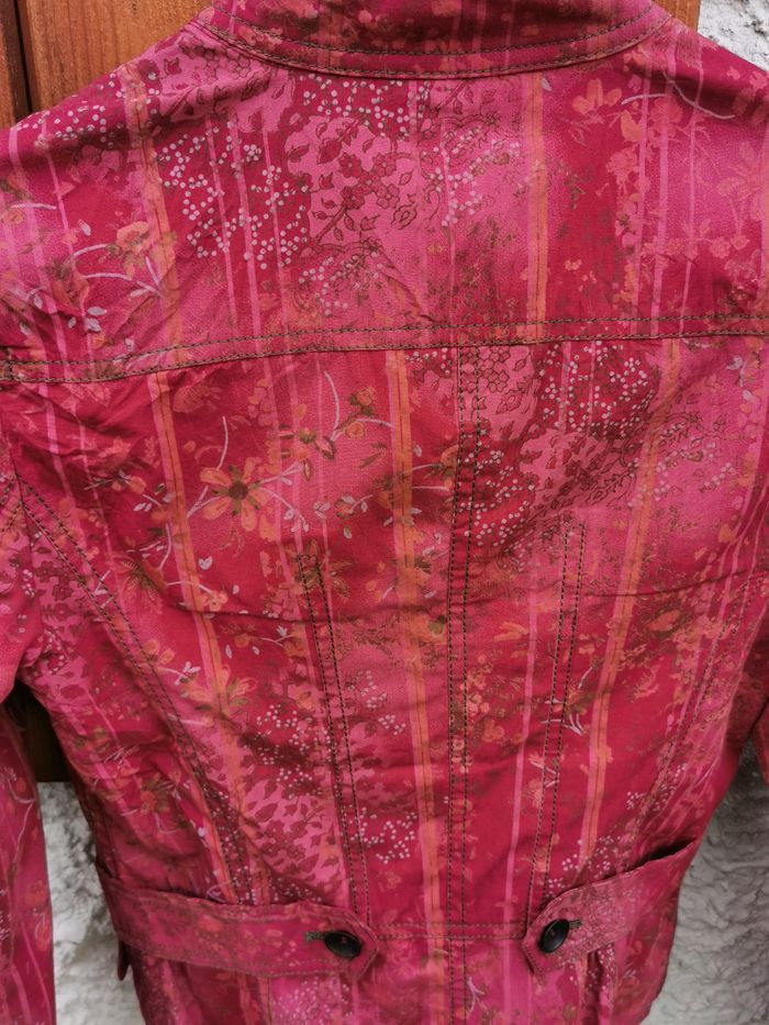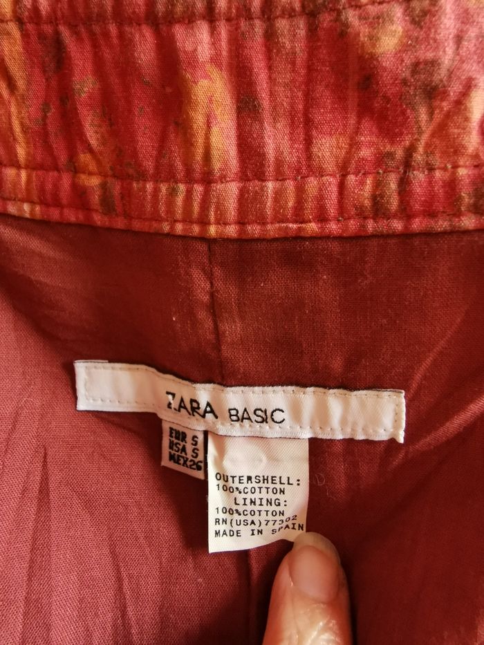 Veste motifs fleuris de la marque Zara Taille S Très peu portée Deux poches au niveau de la poitrine et deux fausses poches sur le bas de la veste Mesure épaule à épaule : 38 cm Mesure aisselle à aisselle : 43 cm Hauteur de dos : 53 cm 100 % Coton