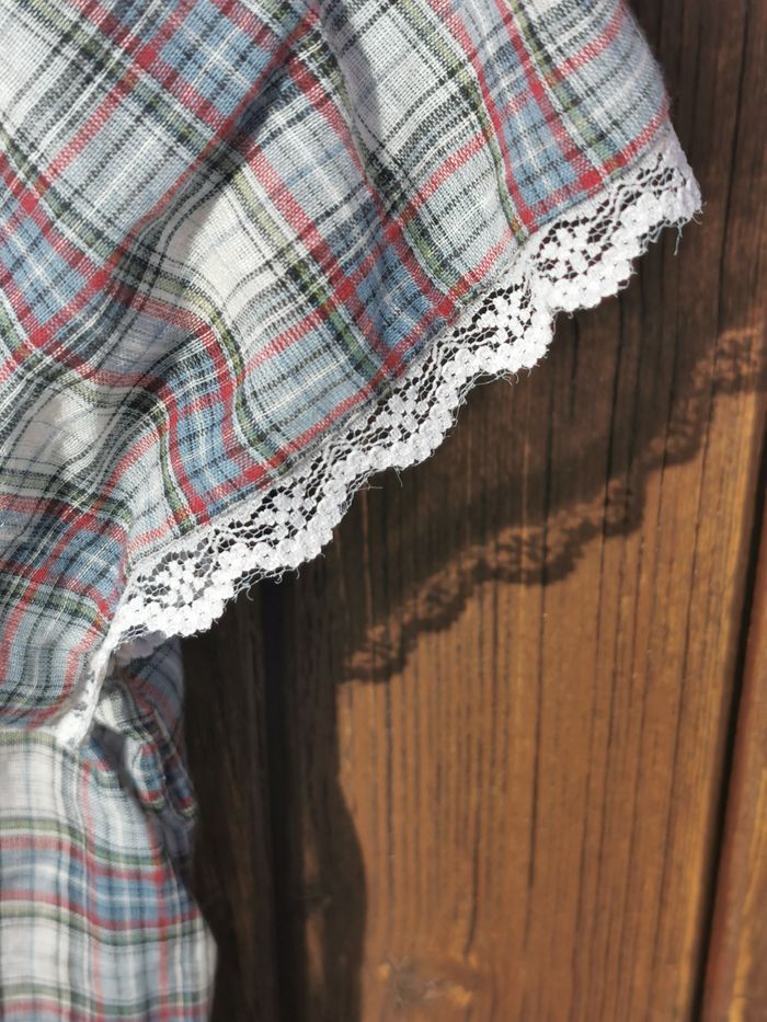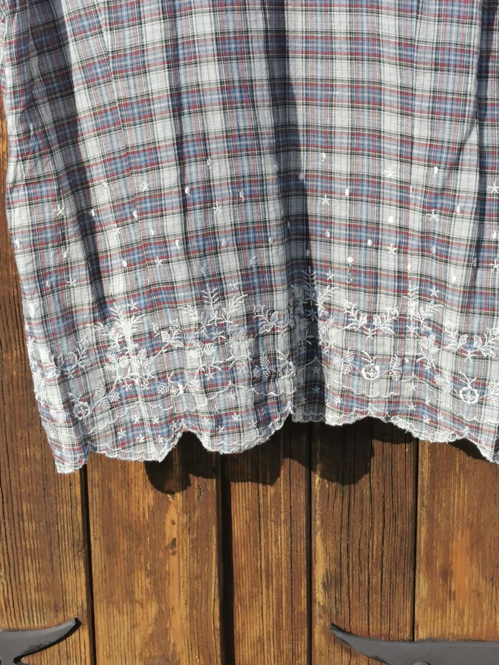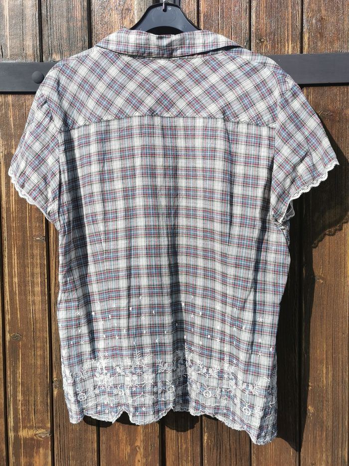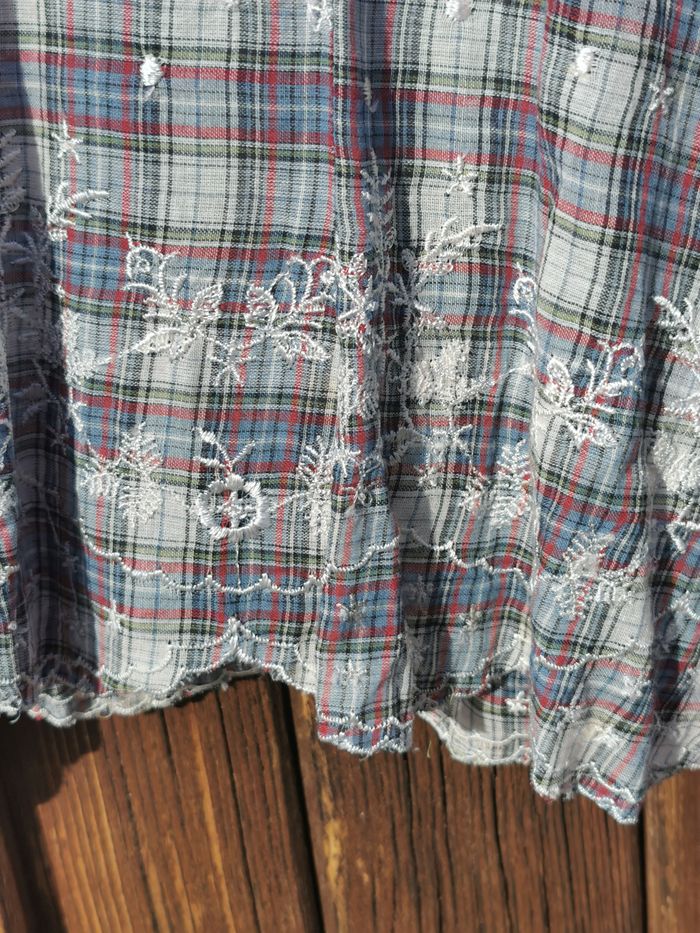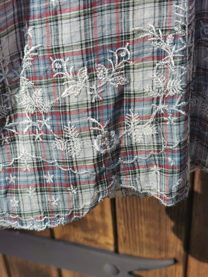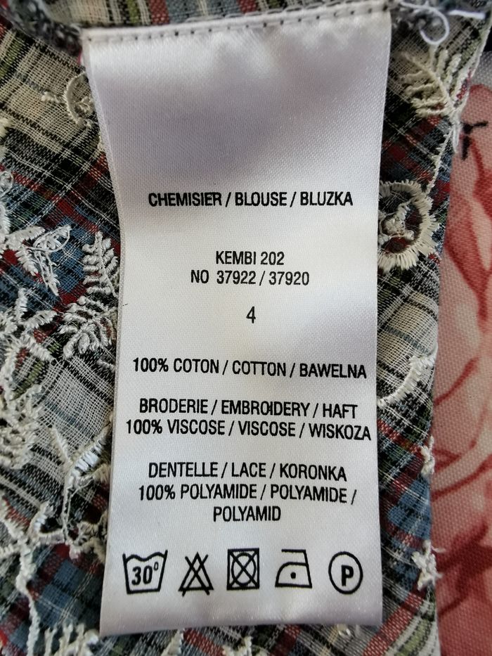 Chemisier Jacqueline RIU Taille 4 Jamais Porté 100 % Coton Broderie => 100 % Viscose Dentelle => 100 % Polyamide Mesure aisselle à aisselle => 52 cm Mesure épaule à épaule => 46 cm Hauteur prise au dos => 65 cm