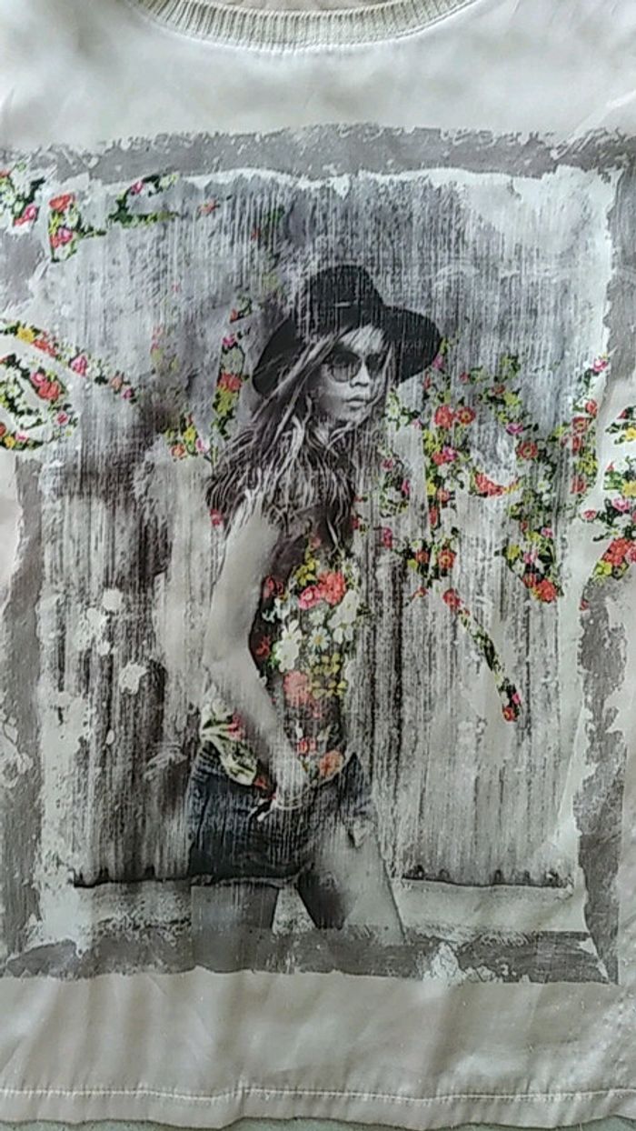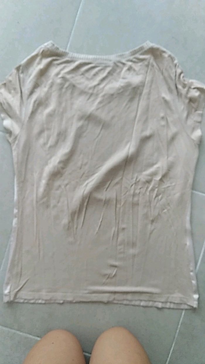 Tee shirt Promod beige satiné à motif - photo numéro 2