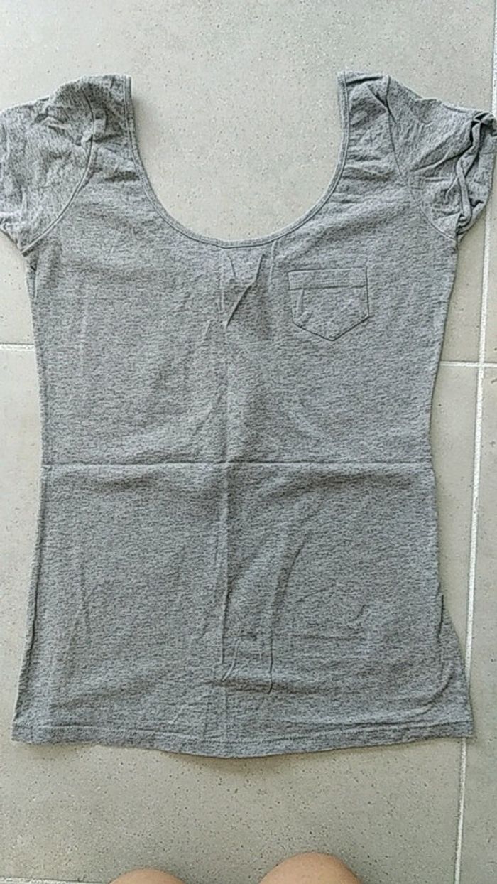 Tee shirt gris Bershka à col rond - photo numéro 2