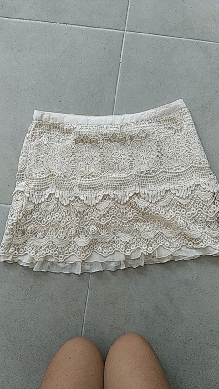 Jupe Promod en dentelle blanc cassé - photo numéro 1