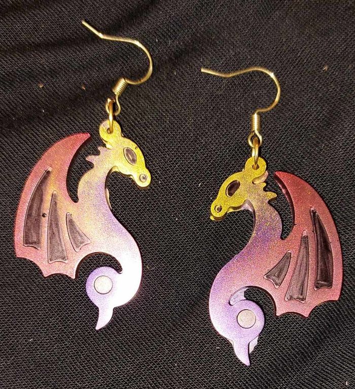 boucles d'oreilles dragons Crochets en argent 925, créées en résine époxy, n'ont jamais été portées.