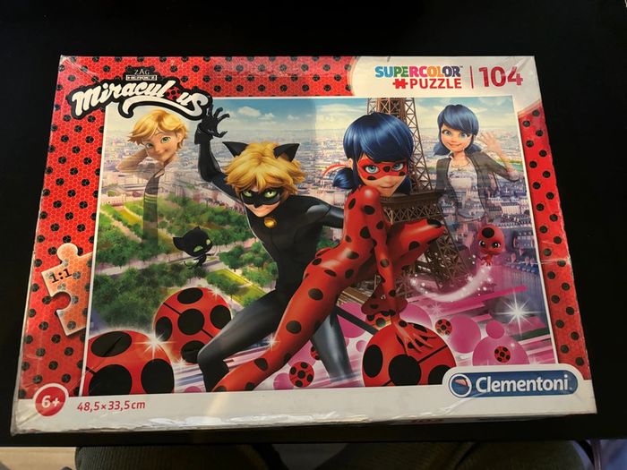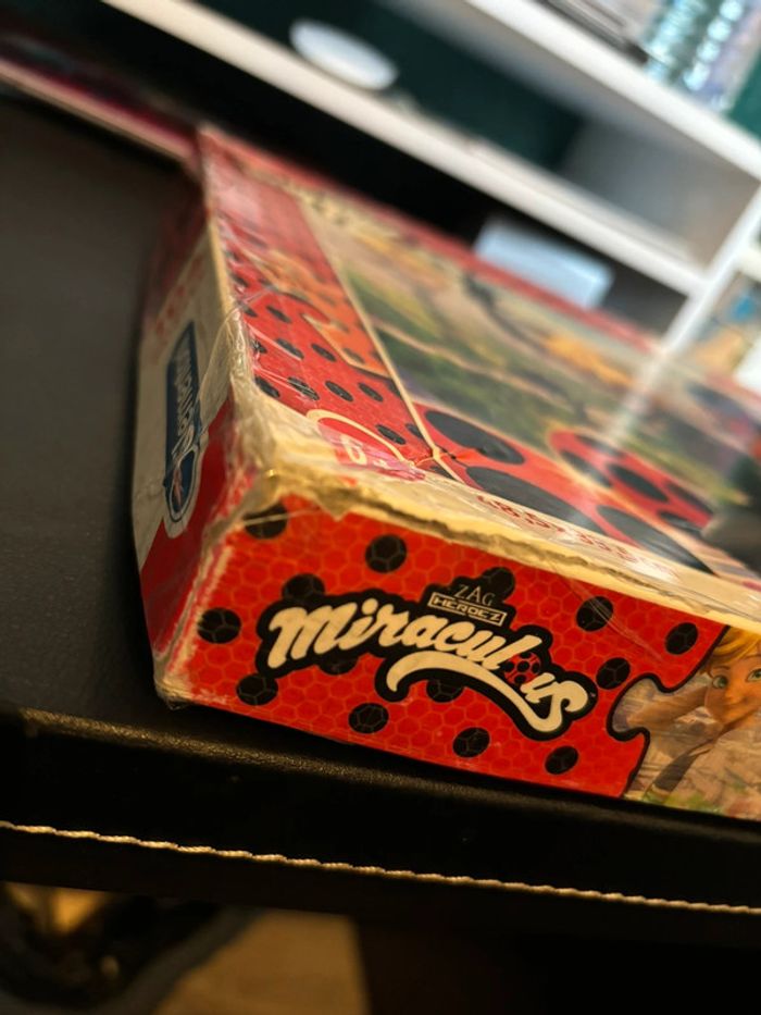 Puzzle Ladybug en bon état, manque 2 pièces. Marque d’usure sur la boîte (réparée avec du scotch) et sur le haut du puzzle (voir photo)