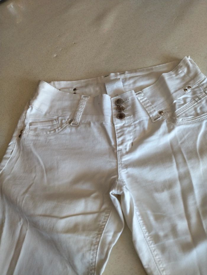 Pantalon jean fin femme Cache cache blanc. Taille 38 - photo numéro 3