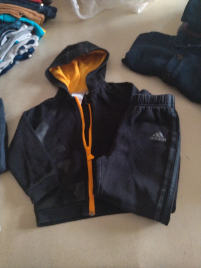 Lot de 14 pièces pour bébé garçon de 18 mois,1 jogging Adidas, 2 bas de jogging, 1 jeans, 1 gilet, 2 pyjamas, 1 body Batman,4 tee shirt manches longues et 2 tee shirt manches courtes. En très bon état