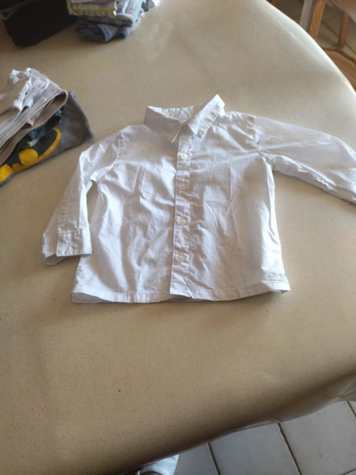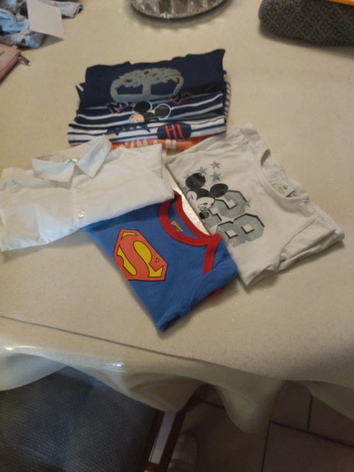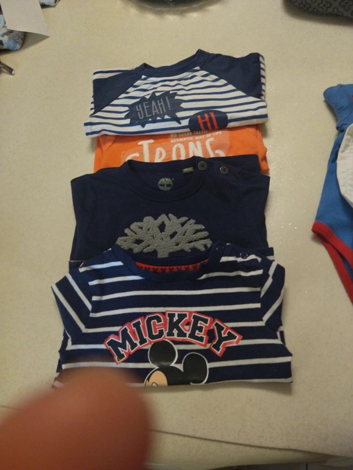 Peu porté, lot de 4 tee shirt manches longues+ 1 body + 1 chemise blanche sans tâches.taille 9 mois