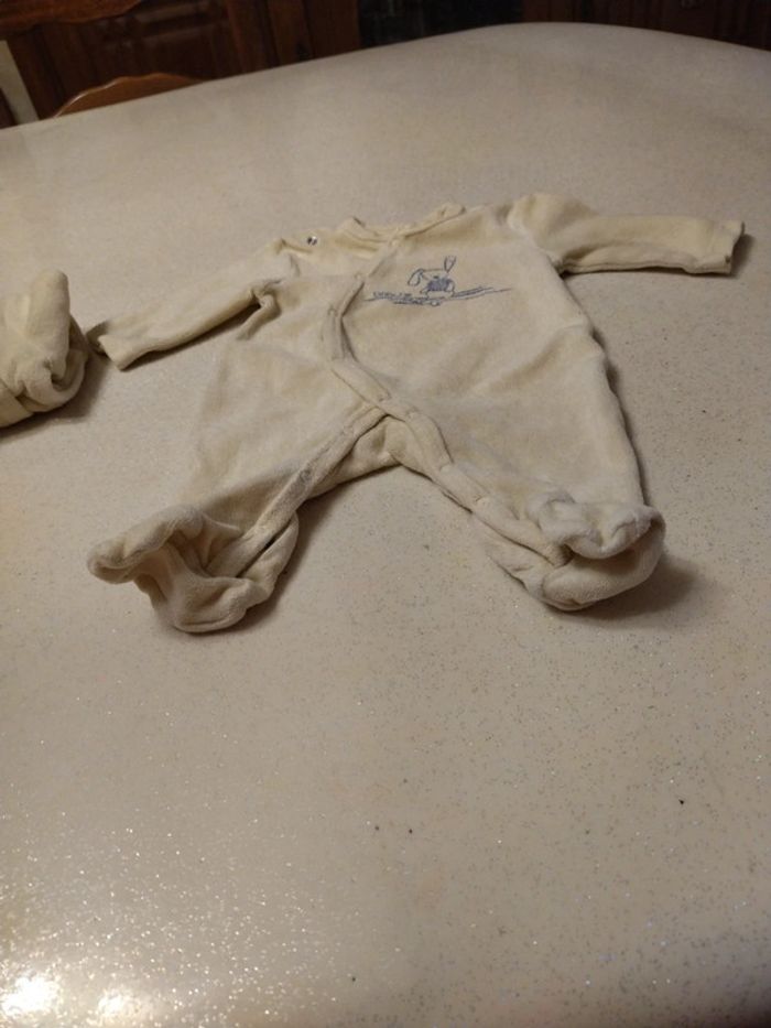 Lot de 2 pyjamas naissance 0 mois. Kiabi et brioche jaune pâle. - photo numéro 7