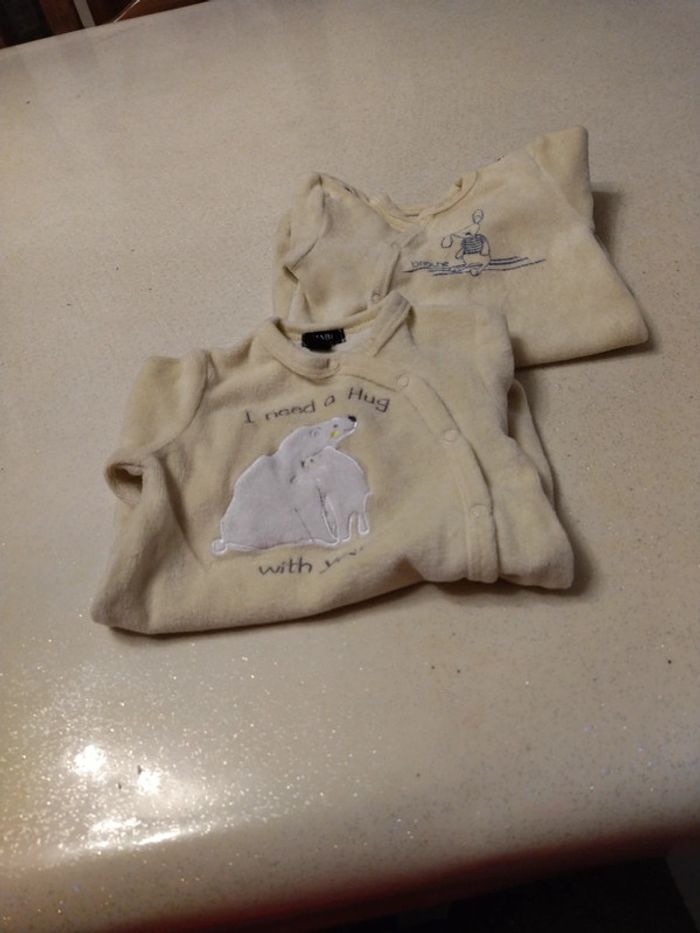 Lot de 2 pyjamas naissance 0 mois. Kiabi et brioche jaune pâle.