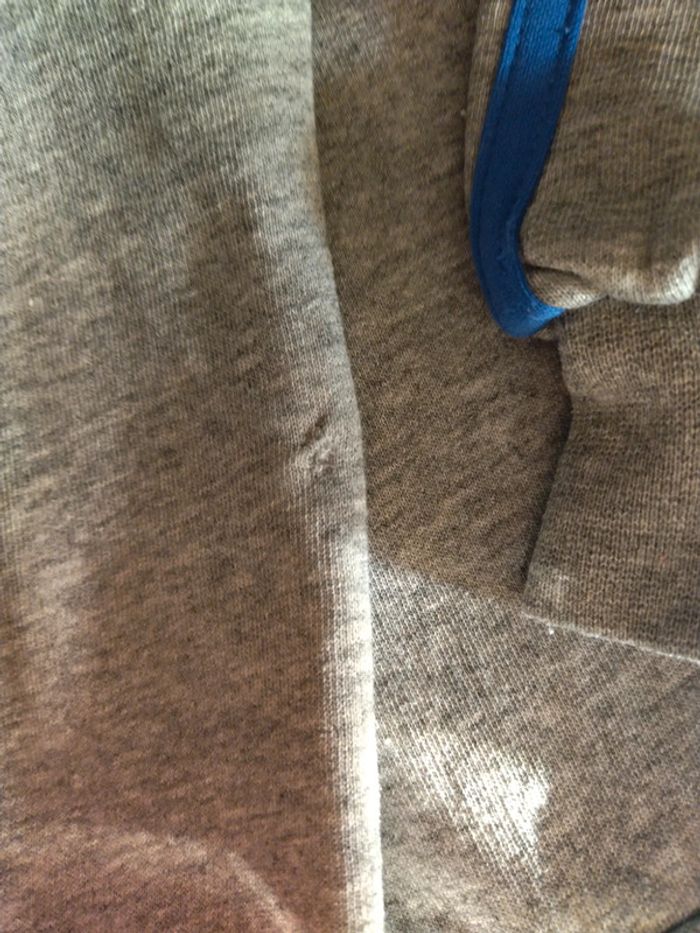 Porté, petit accro qui a été raccommoder( voir 5 ème photo)et petit défaut sur la fermeture éclaire qui ne gêne en rien pour le fonctionnement.