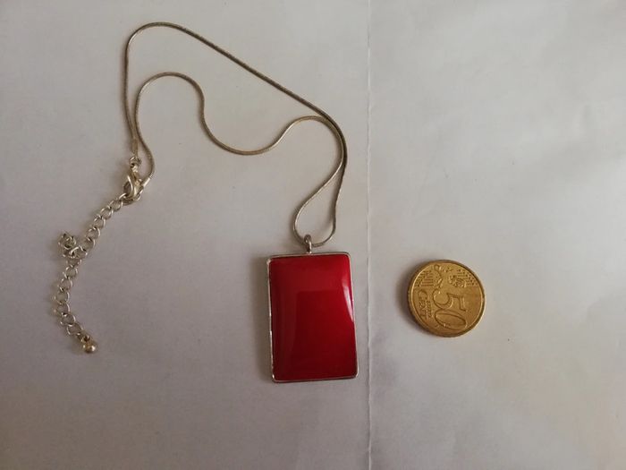 B e car chaîne et dos un peu oxydés. Vintage authentique gros émau rouge #ontherabijou #collieremaux #collieremaillevintage longueur chaine 37cm longueur réglage 8cm