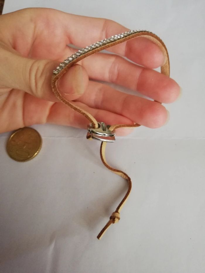 Neuf réglable en cuir/daim et strass. Longueur totale environ 30cm #ontherabijou #braceletdaim