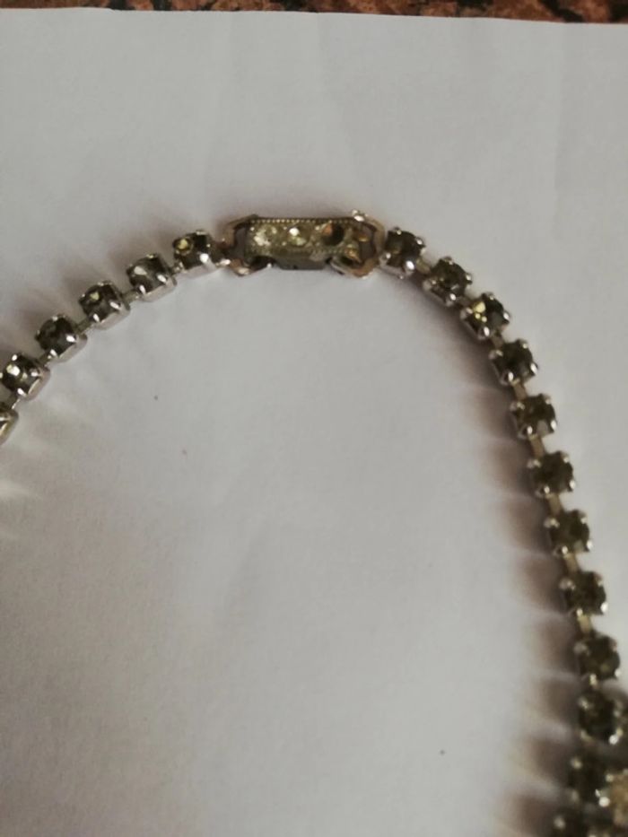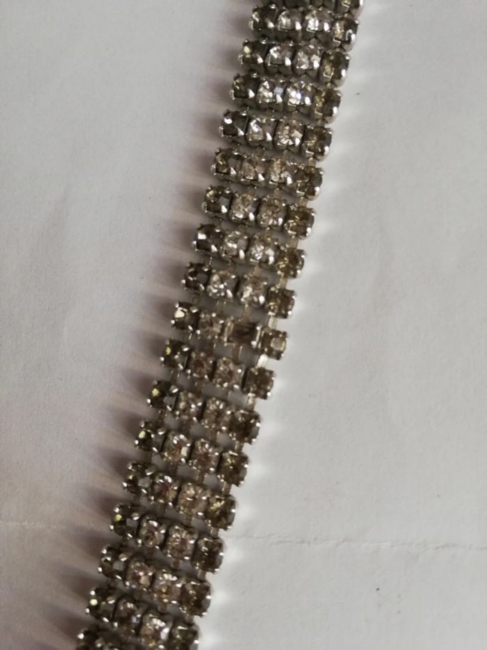 B e car il manque une pierre et 1 strass au fermoir sinon tb. Vintage authentique. Dimensions sur photo #ontherabijou #rasducouvintage #rasducoustrass