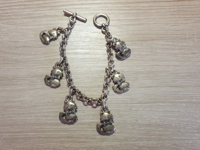 Sublime bracelet vintage authentique chats métal argenté