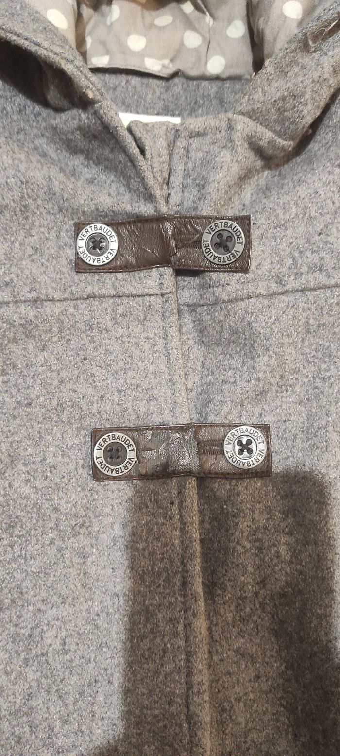 Très joli manteau en laine Verbaudet en 4 ans, en TBE sauf les attaches similicuir qui sont usées mais ne gâche en rien le rendu du manteau qui est superbe 🤩