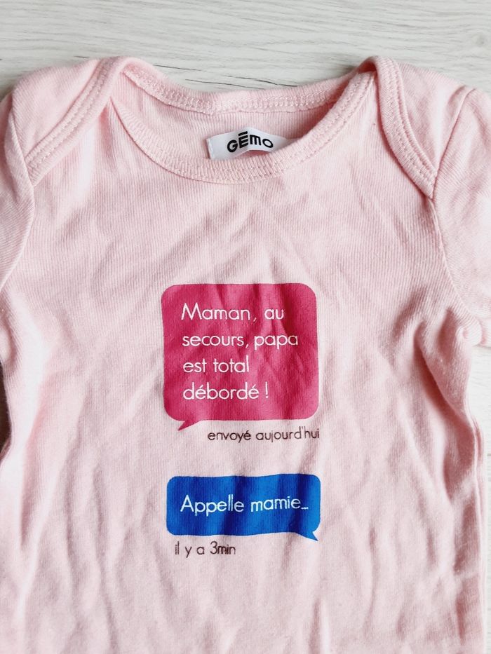 Vêtement bébé fille body manches longues rose SMS Maman papa Gémo 6 mois
