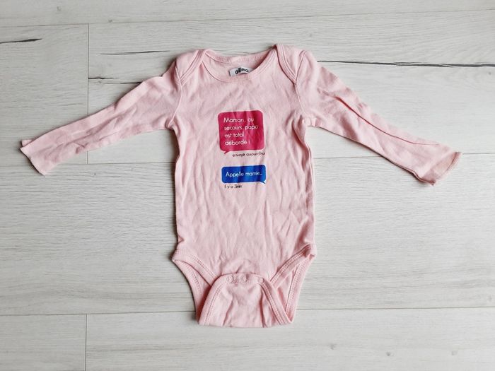 Vêtement bébé fille body manches longues rose SMS Maman papa Gémo 6 mois - photo numéro 1