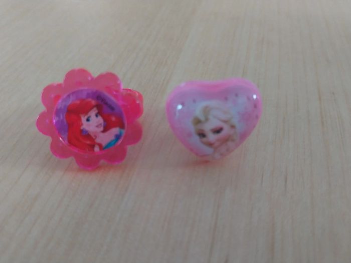 Lot de 2 bagues en plastique princesses Disney Ariel et Elsa - photo numéro 1