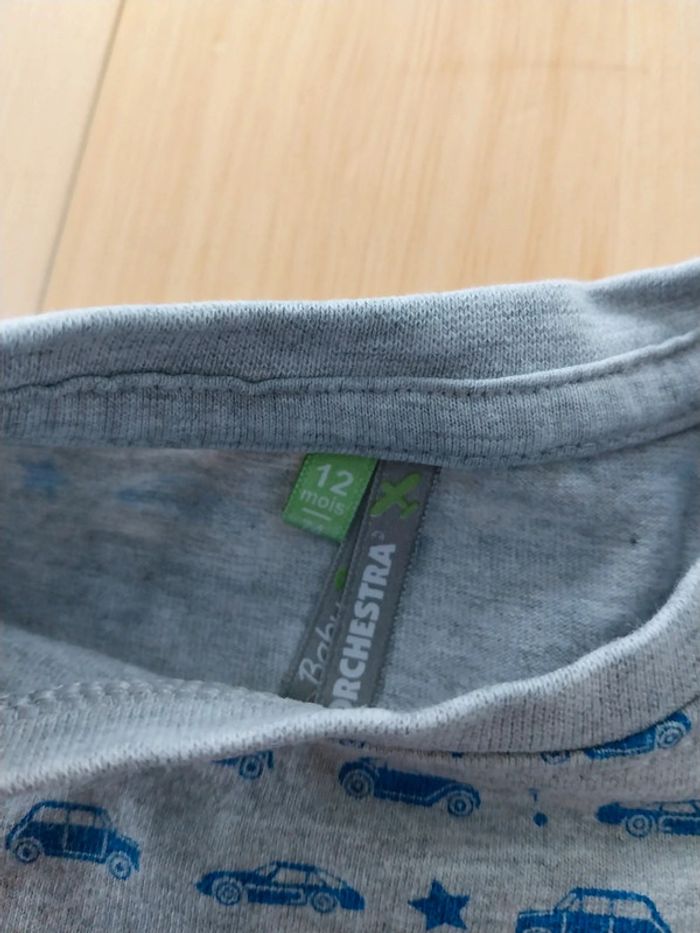 Pull fin bébé 12 mois voitures gris et bleu - photo numéro 1
