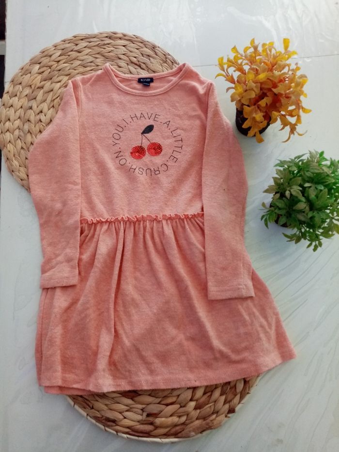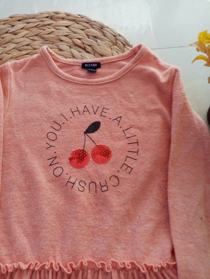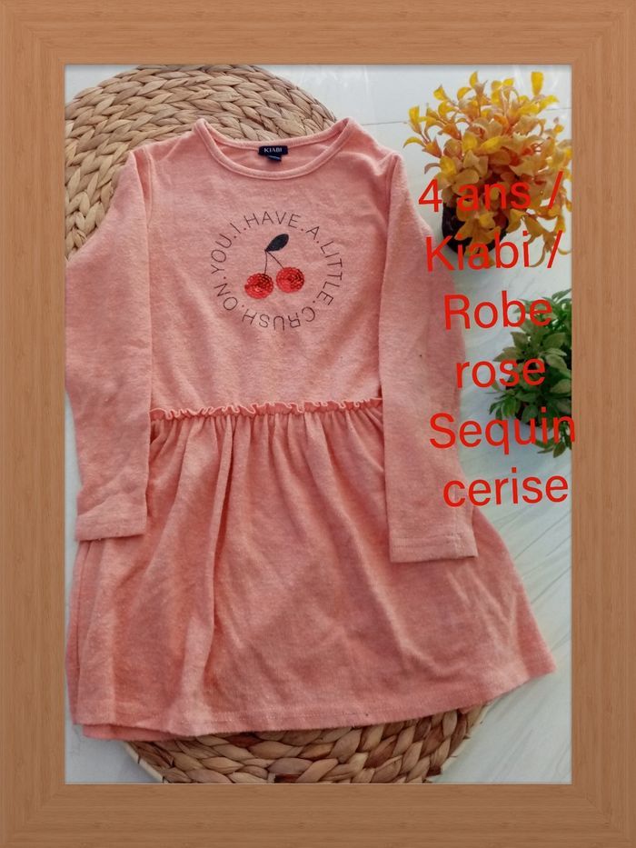 4 ans kiabi robe vieux rose imprimée sequin cerise /bon état