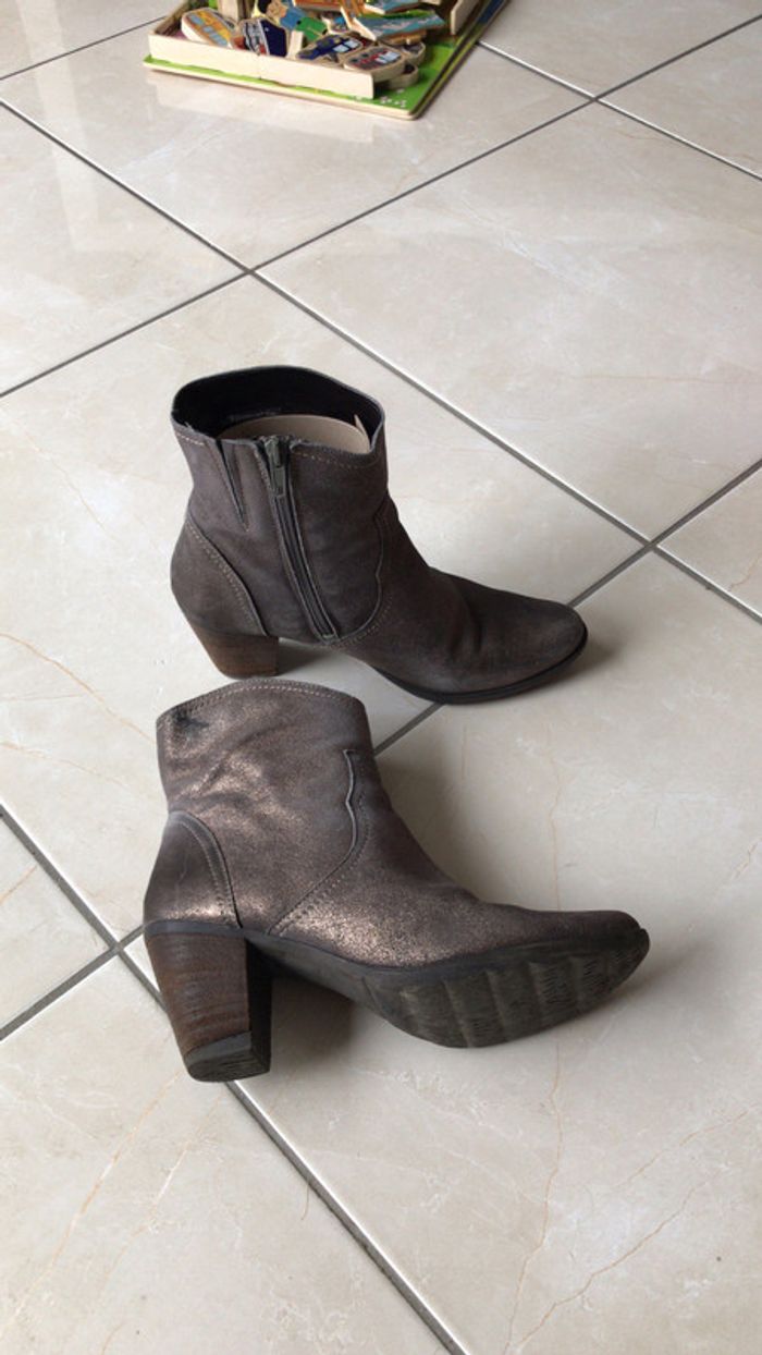 Bottillons cuir véritable bronze pailleté - photo numéro 1