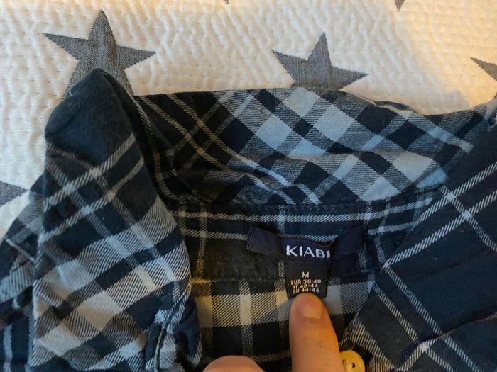 chemise à manches longues à carreaux bleue taille M marque Kiabi 1 poche poitrine peu portée très bon état