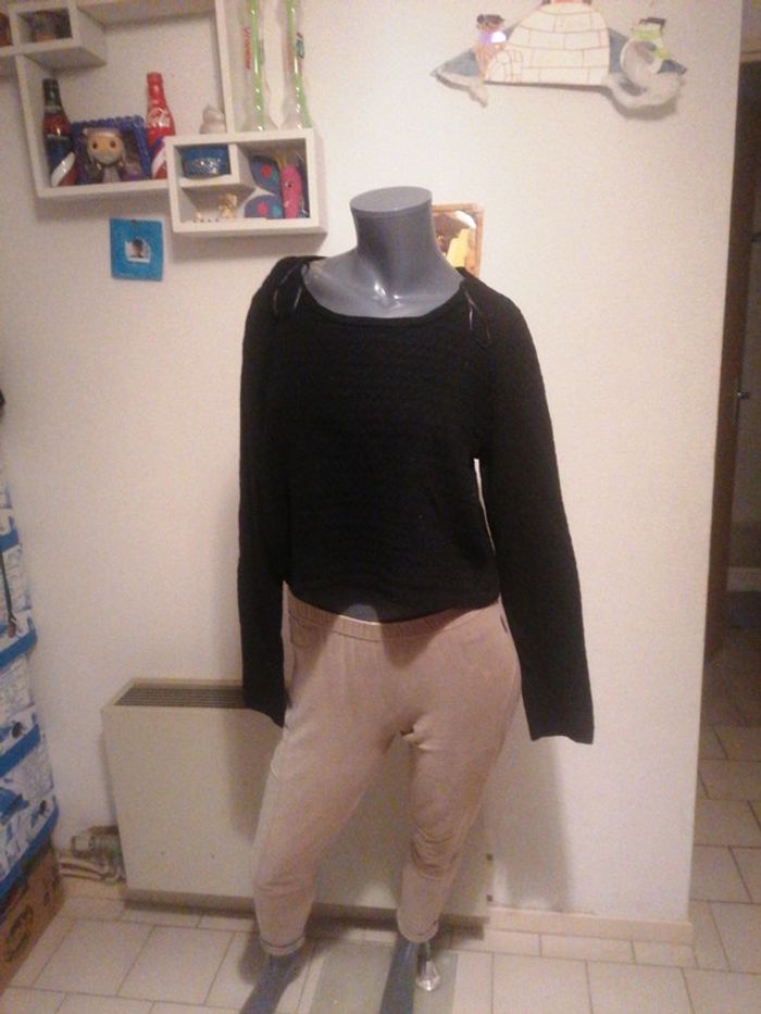 Je ne ses pas la taille donc j ai pris la mesure comme on peu voir sur la photo Boulochez Pull court