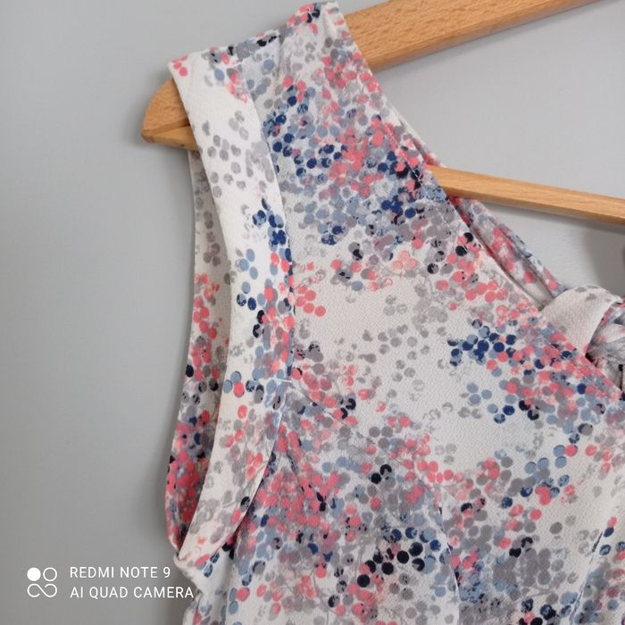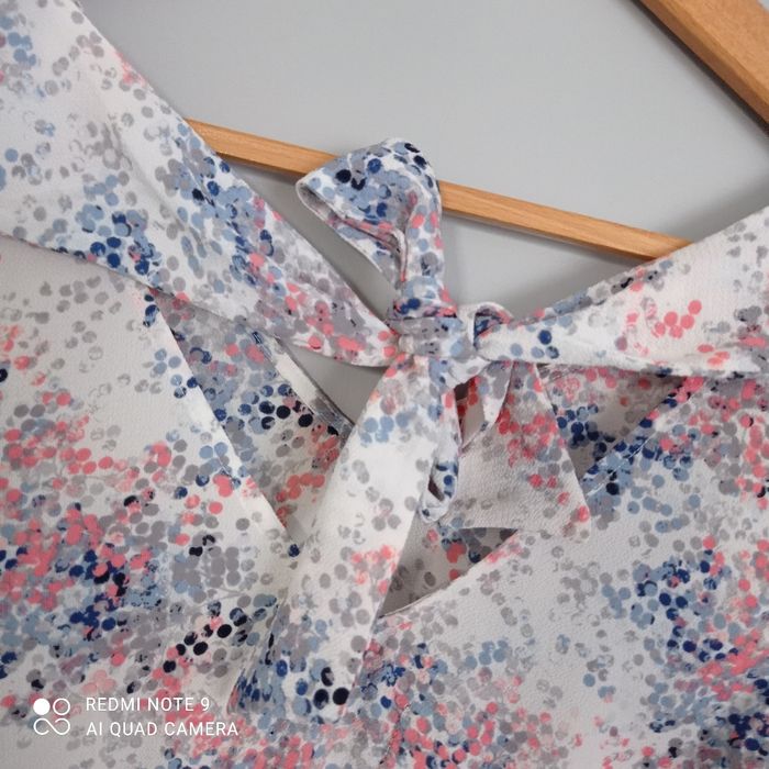 A larges bretelles. A nouer au dos. Fluide, légère. Taille estimée. Mesures sur demande.