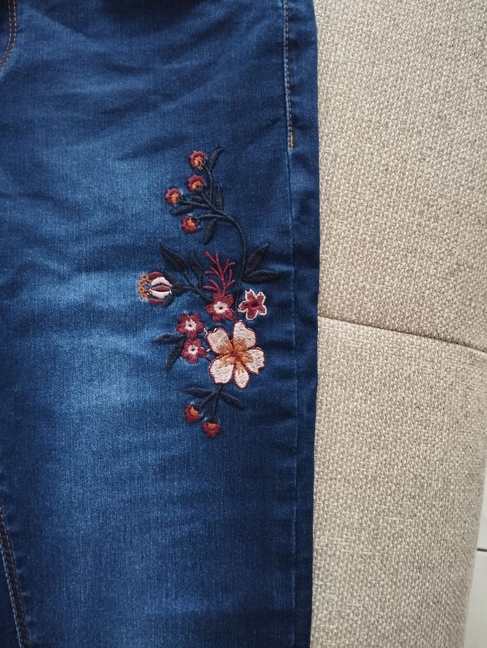 Jean brodées avec des fleurs Jamais porté Erreur de taille En excellent état