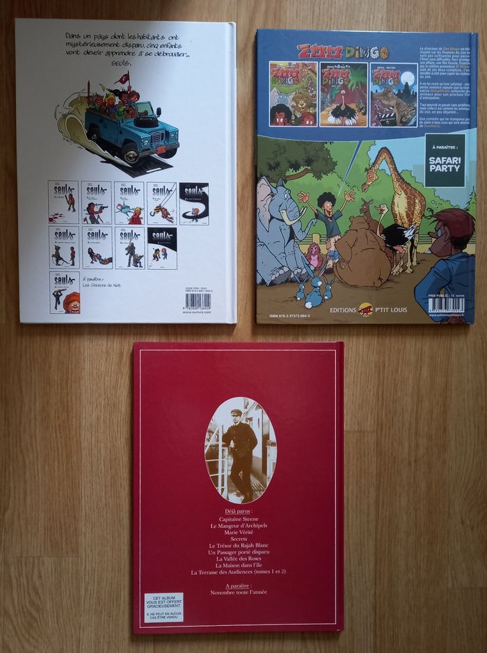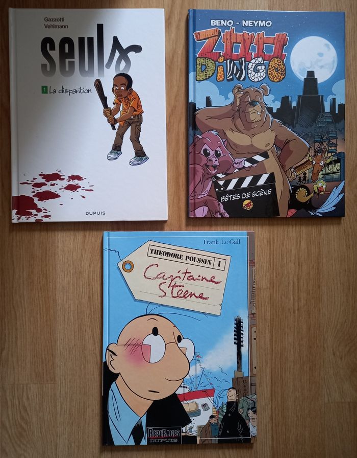 Théodore poussin N° 1 Capitaine Steene 46 pages . Seuls N° 1 la disparition 56 pages . zoo dingo N° 3 Bêtes de scène 48 pages. Tous en excellent état Envoie soigné avec mondial relay ou Chronopost N'hésitez pas à regarder mes autres offres