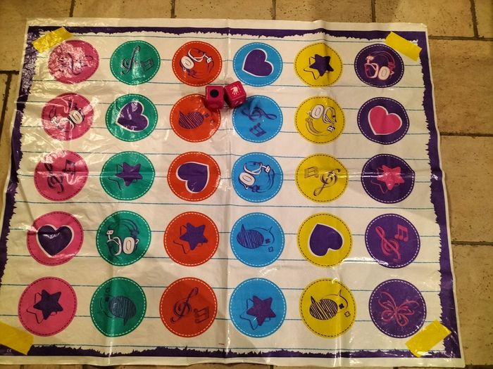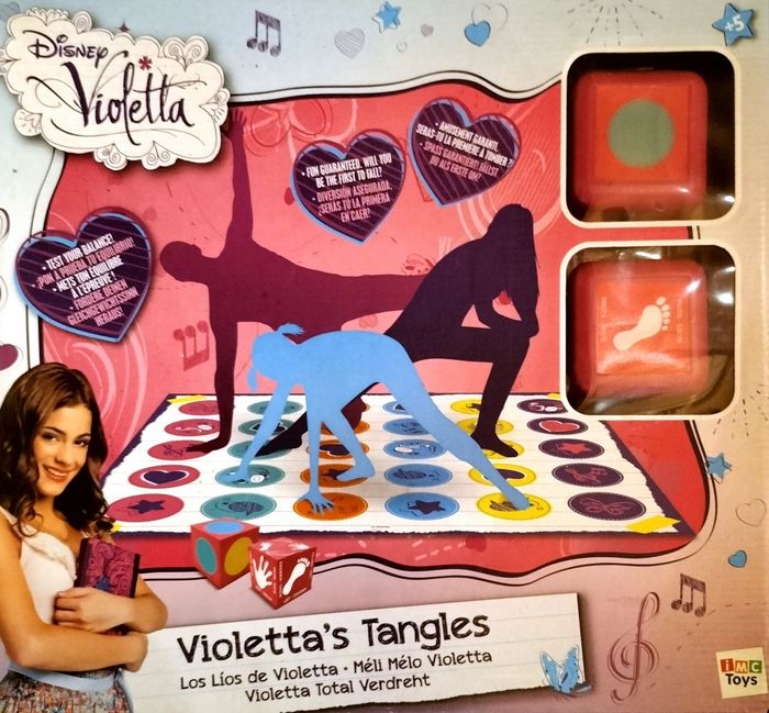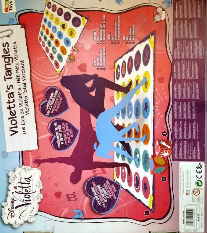 Twister Violetta contenant un tapis de 160*130cm et deux dés annonçant la couleur et le membre à poser.