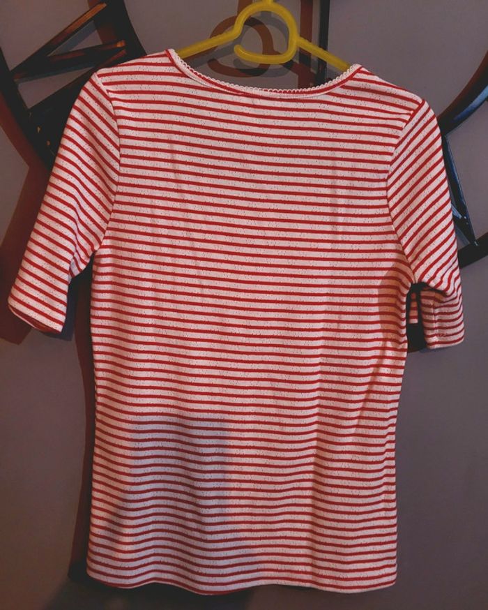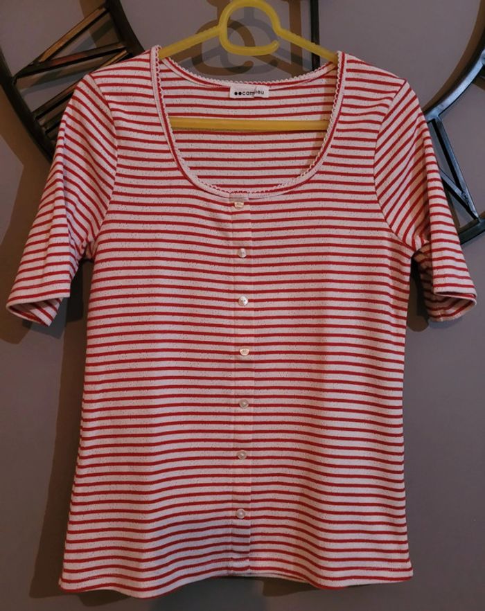Tee shirt Camaïeu Taille 38/M Col rond Manches courtes Rayé blanc et rouge En parfait état comme neuf Étiquette coupé à l intérieur