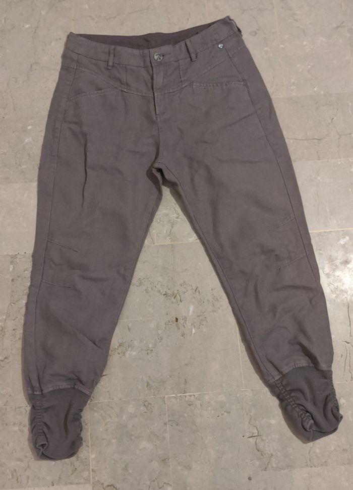 Pantalon Femme vert kaki Taille 36/38 Pantalon 7/8 partie élastique en bas 2 poches devant, fausses poches arrière, ceinture avec passants Mesure: taille 39cm, cuisses 27 cm, longueur à partir de l'entrejambe 64 cm Très joli pantalon en parfait état